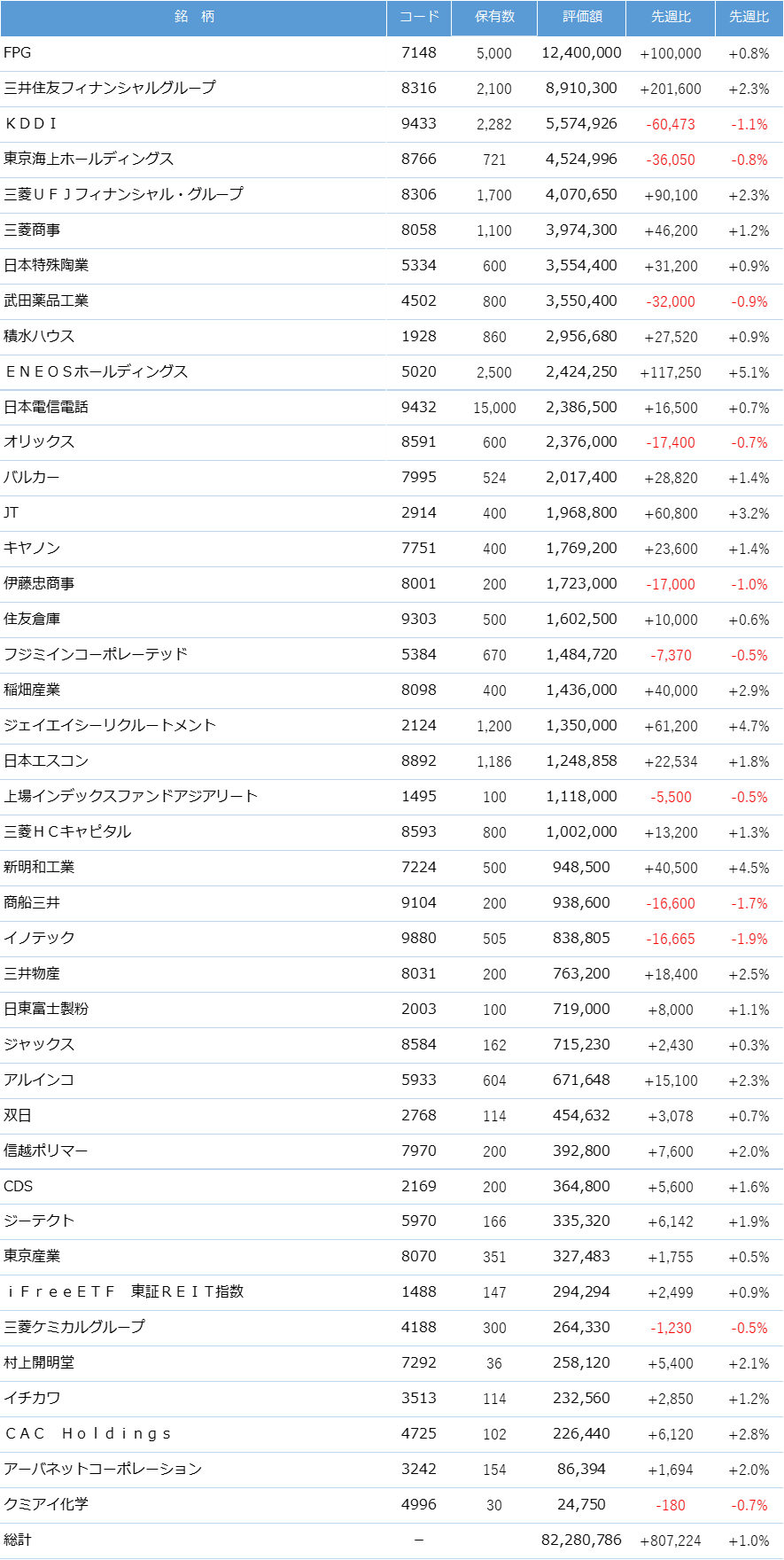 今週は保有する国内株、円換算での米国株の株価、投資信託の基準価額が揃って上昇したため、資産は増加し年初来高値を更新しました。引き続き「高配当株を中心とした長期分散投資」の投資方針を継続していきたいと思います。
