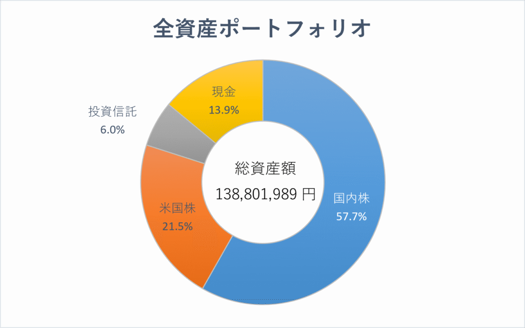 資産比率に関しては、現金比率が高まった状態がしばらく続くと思いますが、新NISAで毎年、米国株、投資信託を購入していく予定ですので、徐々に米国株と投資信託の比率が増えていく予定です。