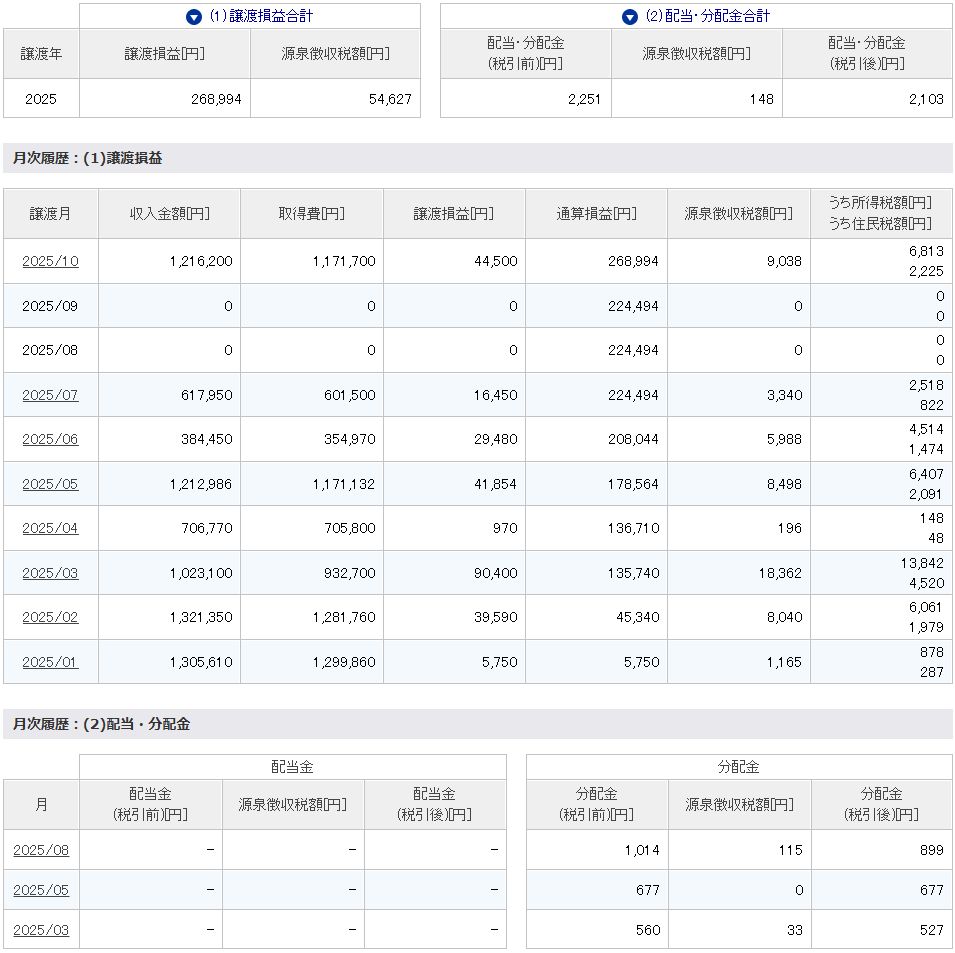 今週は売却しませんでしたので、通算損益に変動はありません。現時点の通算損益は+268,994円、評価損益は-1,013円です。