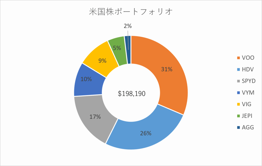 米国株は高配当ETFを中心に安定感のあるETFを購入しています。現在の保有米国株全体の予想配当利回りは、税引前で約3.53%になっています。