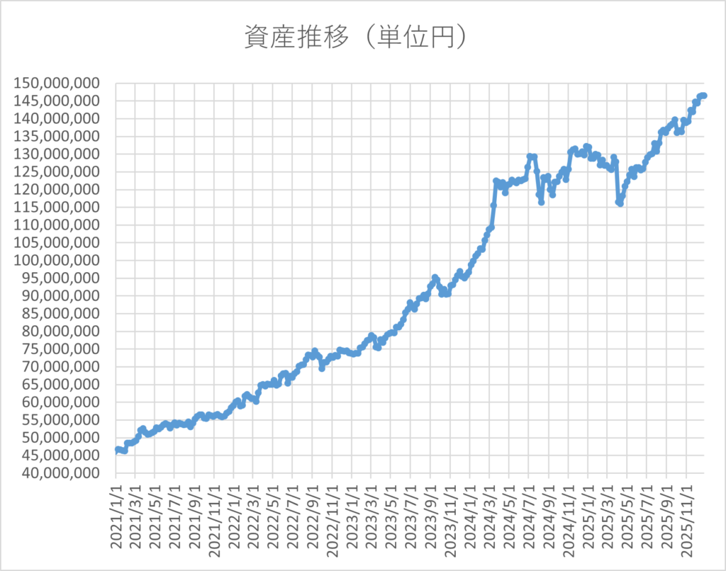 2025年12月27日時点の総資産額は約1億4,647万円になっています。