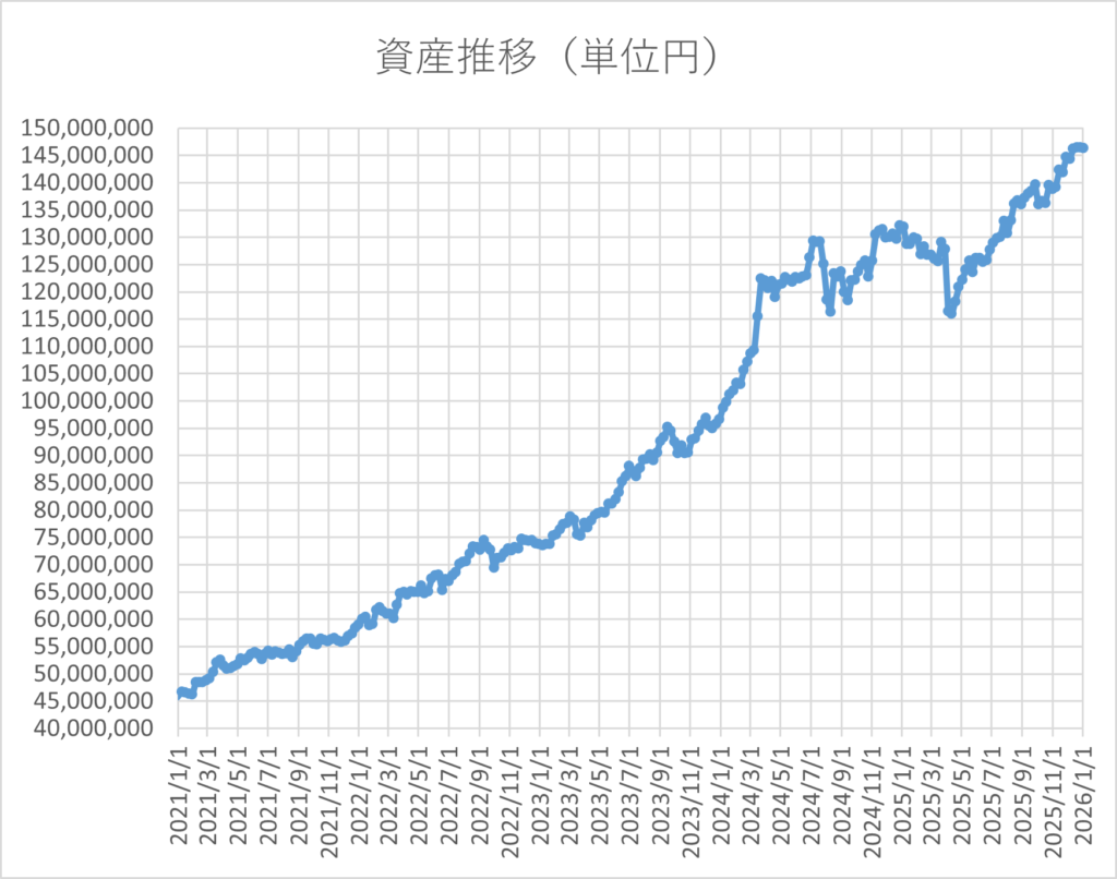 2026年1月3日時点の総資産額は約1億4,636万円になっています。