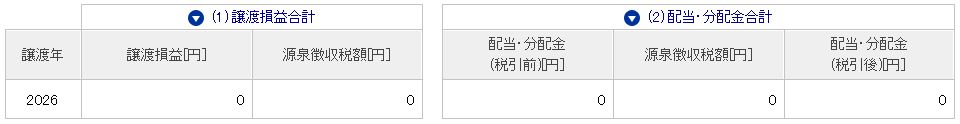 今年はまだ国内株の取引は開始されていませんので、現時点の通算損益は0円、評価損益も0円です。