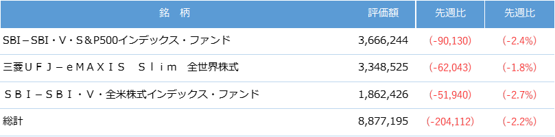 今週も資産が減少しました。