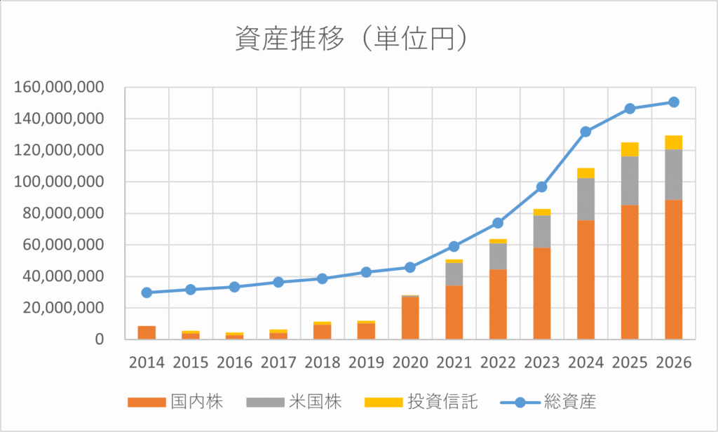 投資を本格的に始めてから、資産は順調に増加しています。