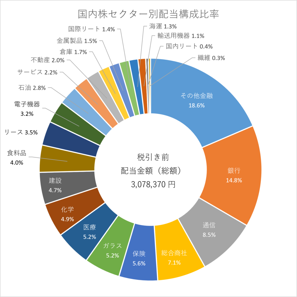 今週は下記の国内株を売買しましたので、セクター別の予想配当構成比率が変更されています。
