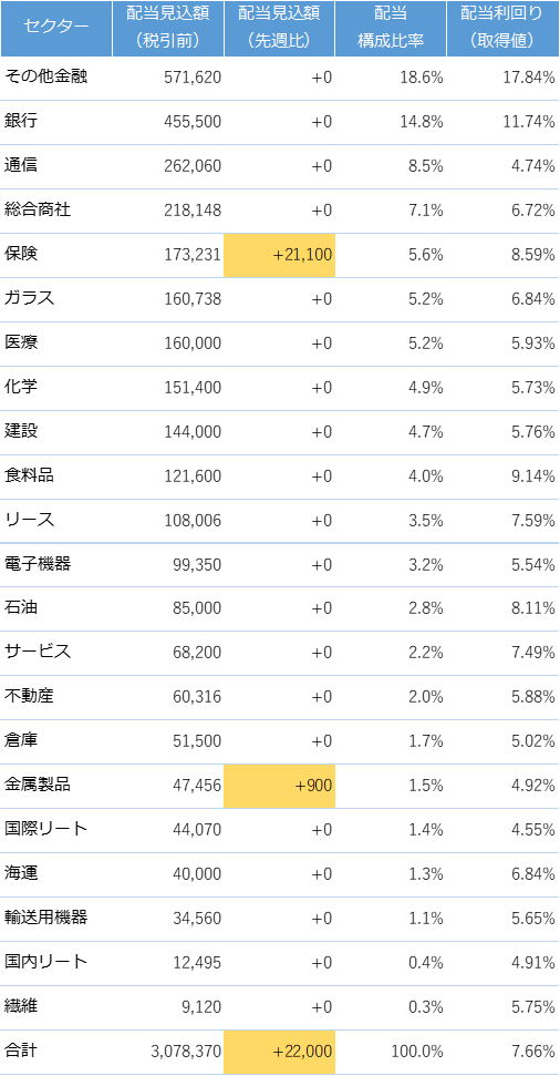 今週は国内株、米国株を追加購入したため、年間配当見込額が増加しました。