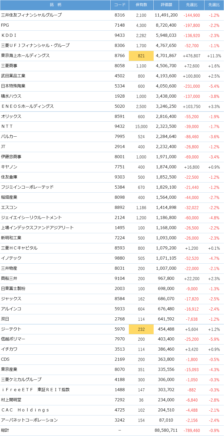 保有銘柄(国内株)