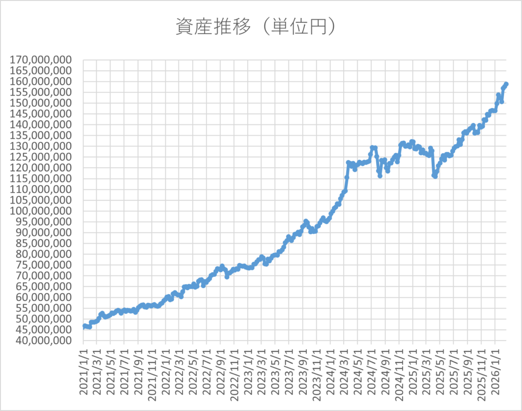 2026年2月21日時点の総資産額は約1億5,880万円になっています。
