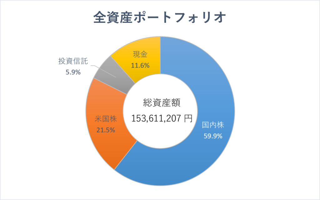 最終目標(新NISAの枠を全て使い切った後)は、国内株55%、米国株25%、投資信託10%、現金10%くらいの比率にしたいと考えています。