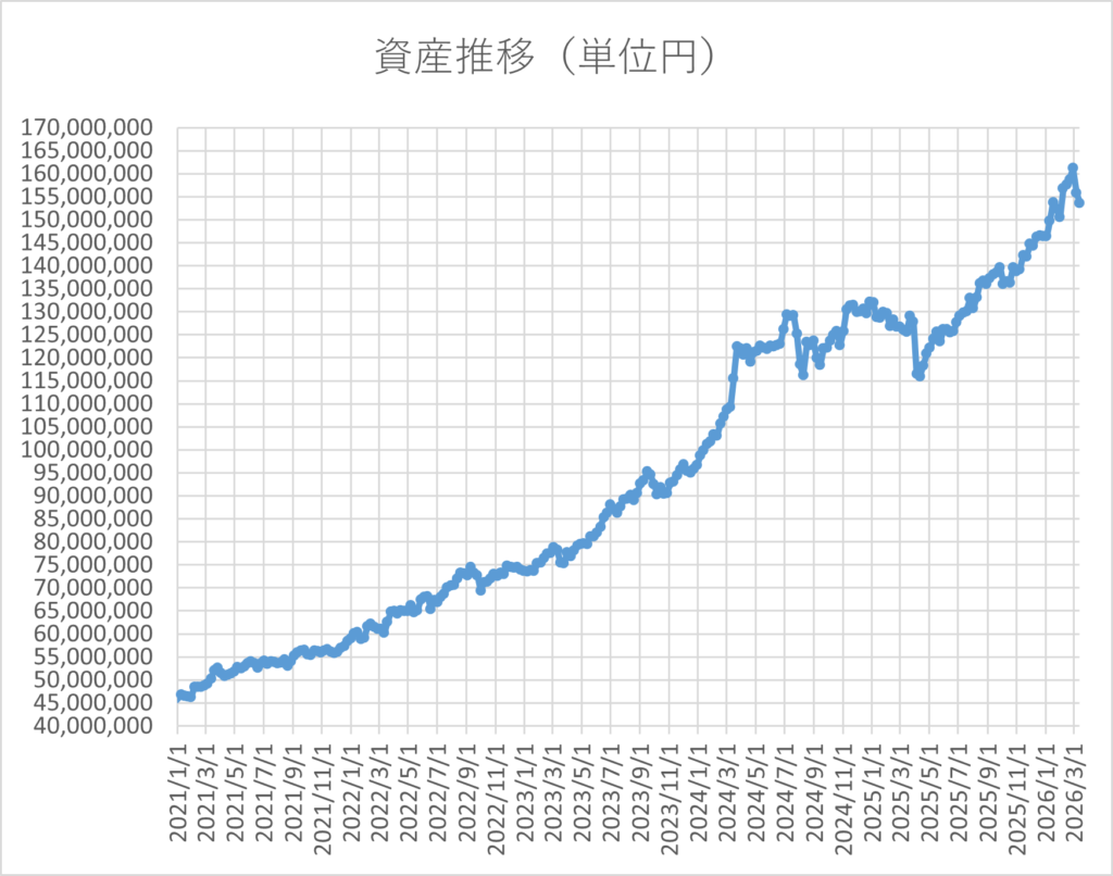 2026年3月14日時点の総資産額は約1億5,361万円になっています。