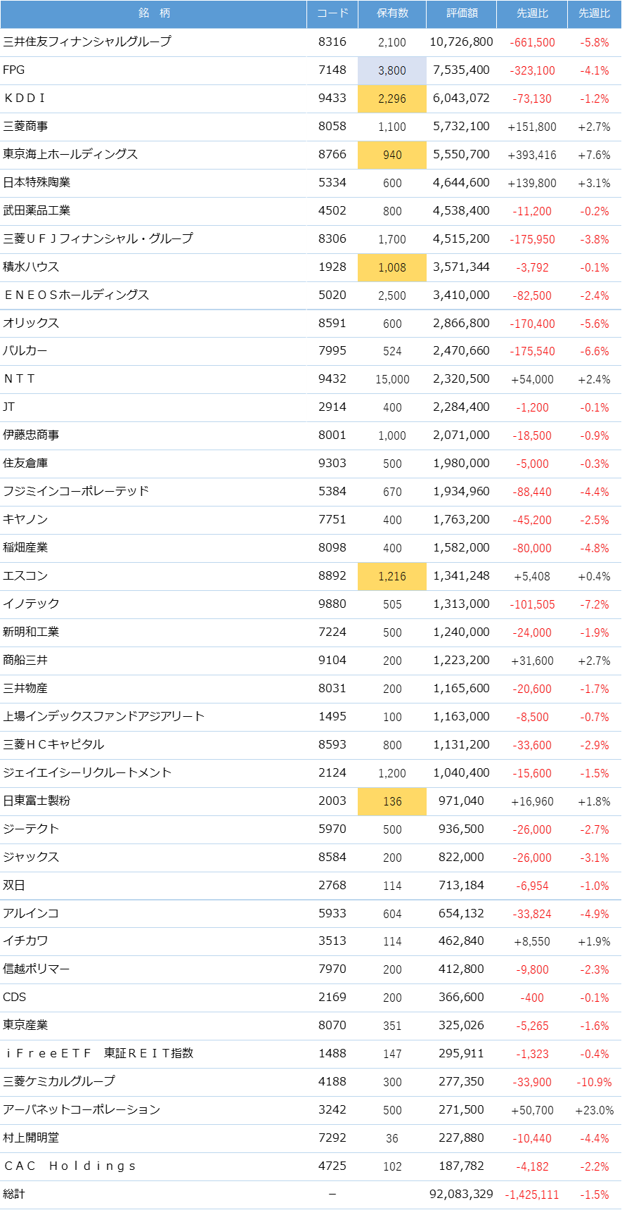 保有銘柄(国内株)