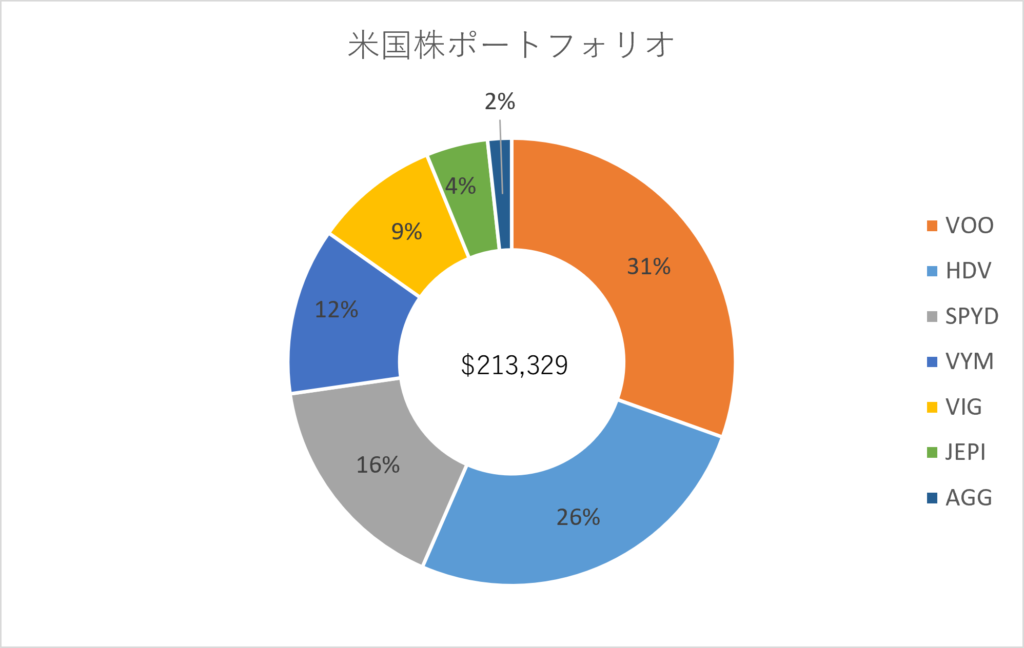 米国株は高配当ETFを中心に安定感のあるETFを購入しています。現在の保有米国株全体の予想配当利回りは、税引前で約3.57%になっています。