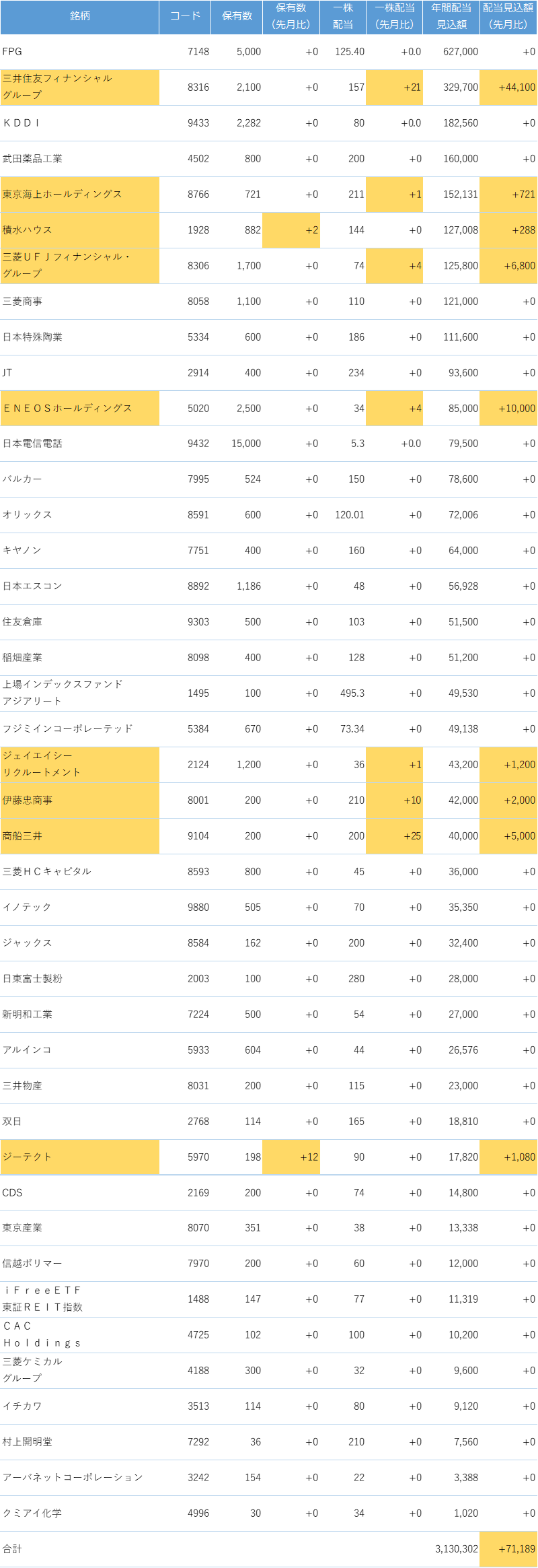 今後も着実に配当金見込額を積み上げていきたいと思います。