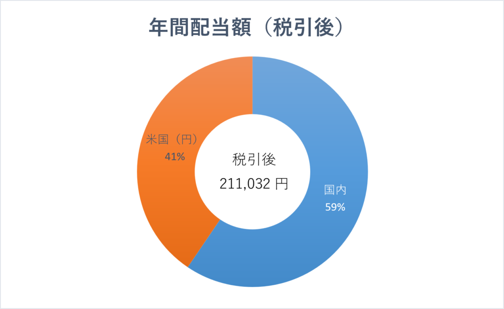 配当の受領額は税引き後(外国税:10%、所得税:15.315%、地方税:5%)を掲載しています。